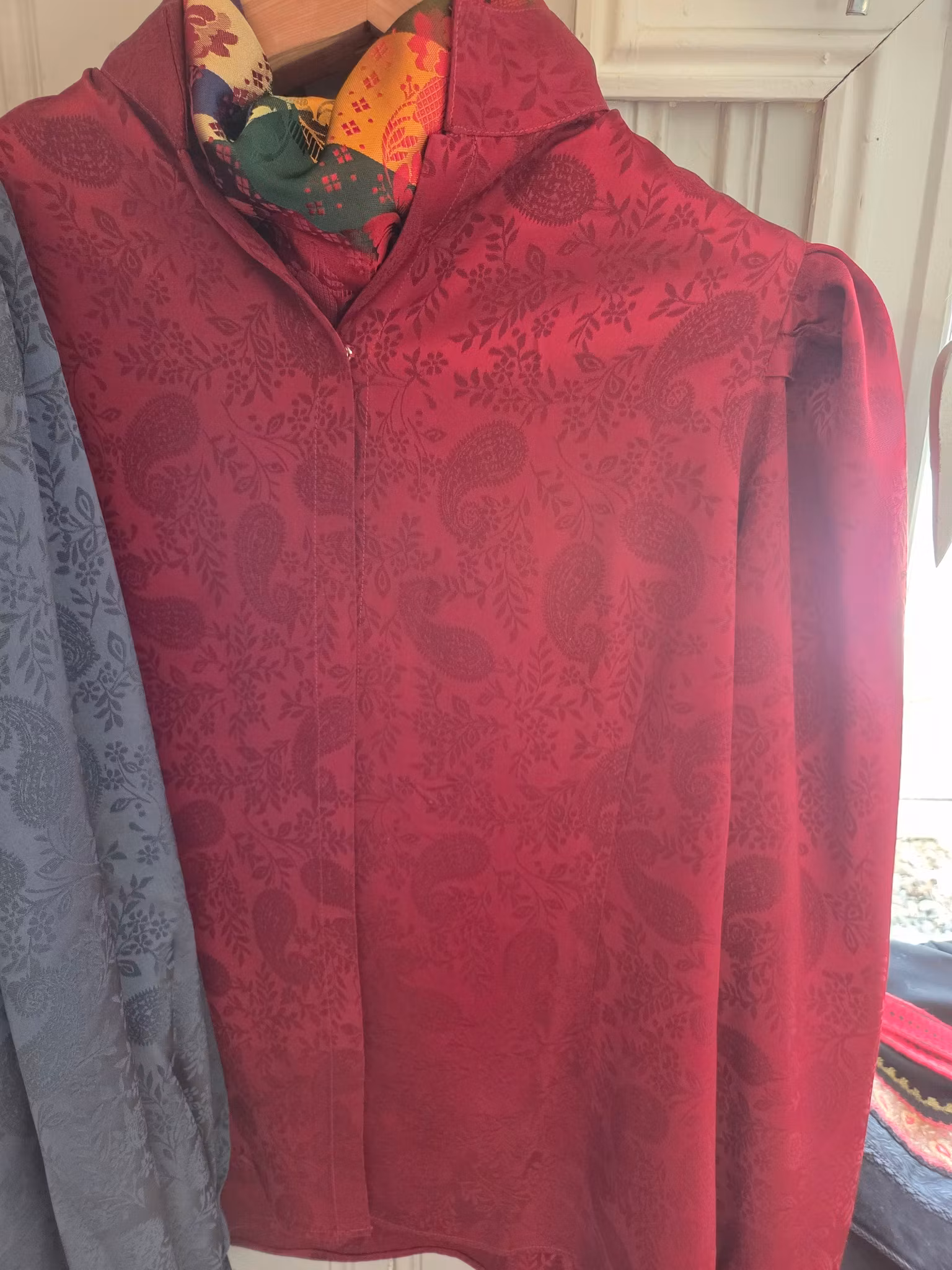NYHET Damask mønstret skjorter med puffermer. Henger flott på kroppen, like flotte til bunaden som til bukser eller skjørt.